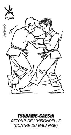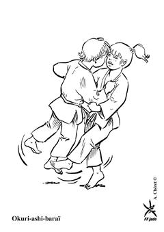 Uke est en déséquilibre arrière droit. Avec la jambe droite, Tori fauche son talon par l'intérieur. Uke chute en arrière sur le dos. (Méthodes comparées - C. Thibault)