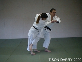 Mettre Uke en déséquilibre avant droit. Tori bloque le pied droit adverse avec son pied gauche et tourne son corps vers la gauche. Uke chute vers l'avant et arrive au sol sur le dos. (Méthodes comparées - C. Thibault)