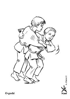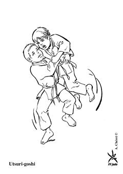 Mettre Uke en déséquilibre avant ou avant droit. Tori l'amène près de sa hanche droite et le projette en lançant en arrière et vers le haut sa hanche droite et sa jambe droite. (Méthodes comparées - C. Thibault)