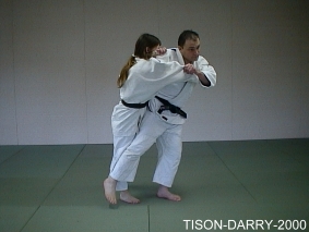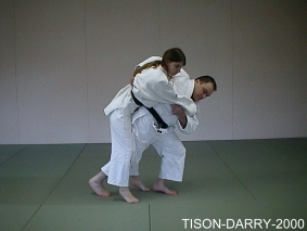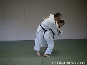 Mettre Uke en déséquilibre avant droit. Tori crée un contact entre le corps adverse et le sien au niveau de la hanche droite et des reins, amène Uke sur lui et le projette en tournant le corps vers la gauche. (Méthodes comparées - C. Thibault)