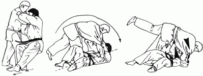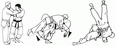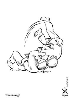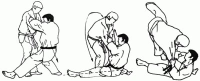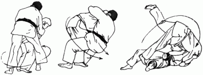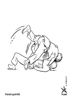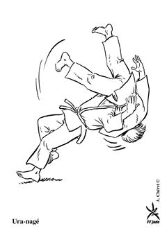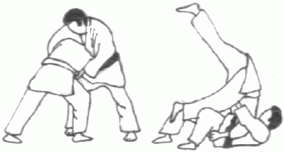 Projection en contre utilisée quand l'un des adversaires tente une technique de hanche. Tori encercle la taille d'Uke par derrière et se jette en arrière l'entraînant dans sa chute. (Méthodes comparées - C. Thibault)