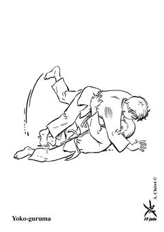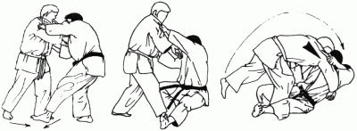 Uke est en déséquilibre avant ou avant droit. Tori se laisse tomber au sol, amène sa jambe droite à l'intéieur et contre la cuisse gauche adverse, et projette Uke au-dessus de lui. (Méthodes comparées - C. Thibault)
