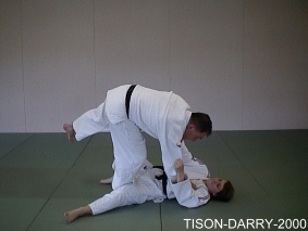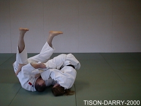 Même principe que pour le 1er Sutemi, mais Tori tourne avec Uke et se retrouve à cheval sur lui pour lui faire subir une clé de bras. (Méthodes comparées - C. Thibault)